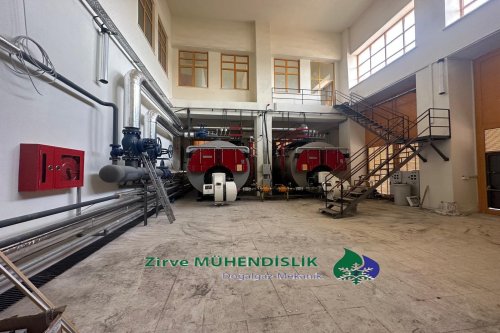 Kazan dairesi kurulumu, sıcak su üretim sistemi ve 20 ton/saat buhar kazanı işleri tamamlandı.